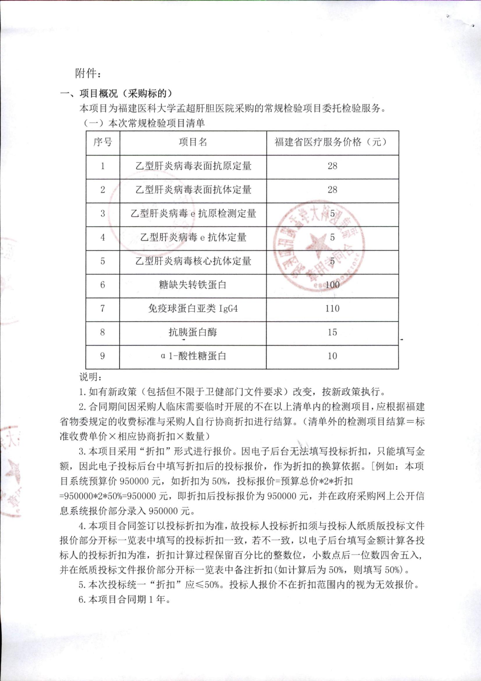 福建医科大学孟超肝胆医院常规检验项目委托检验服务2采购项目政府采购合同公示