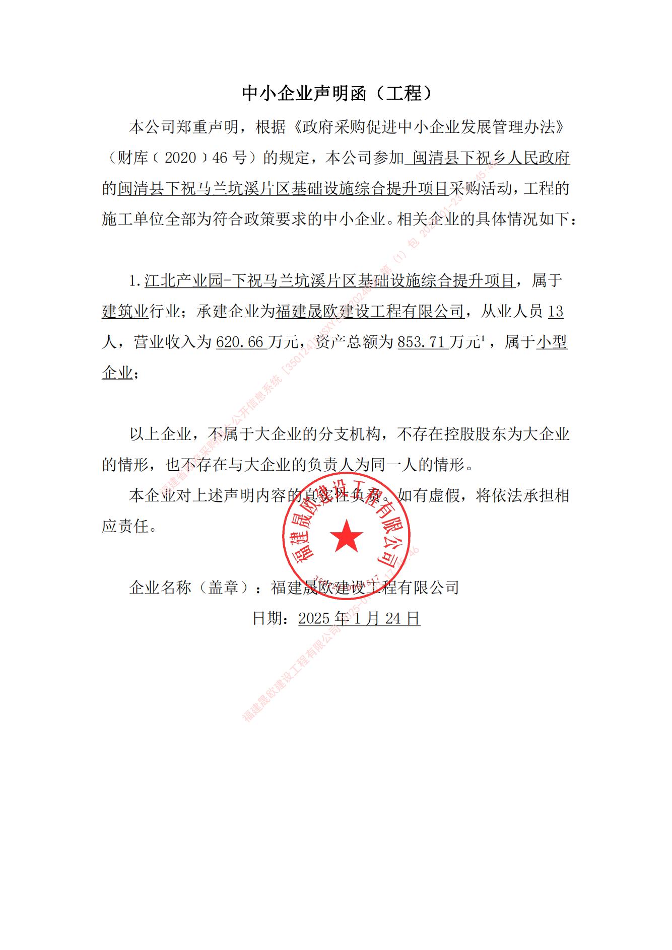 闽清县下祝马兰坑溪片区基础设施综合提升项目结果公告(采购包1)
