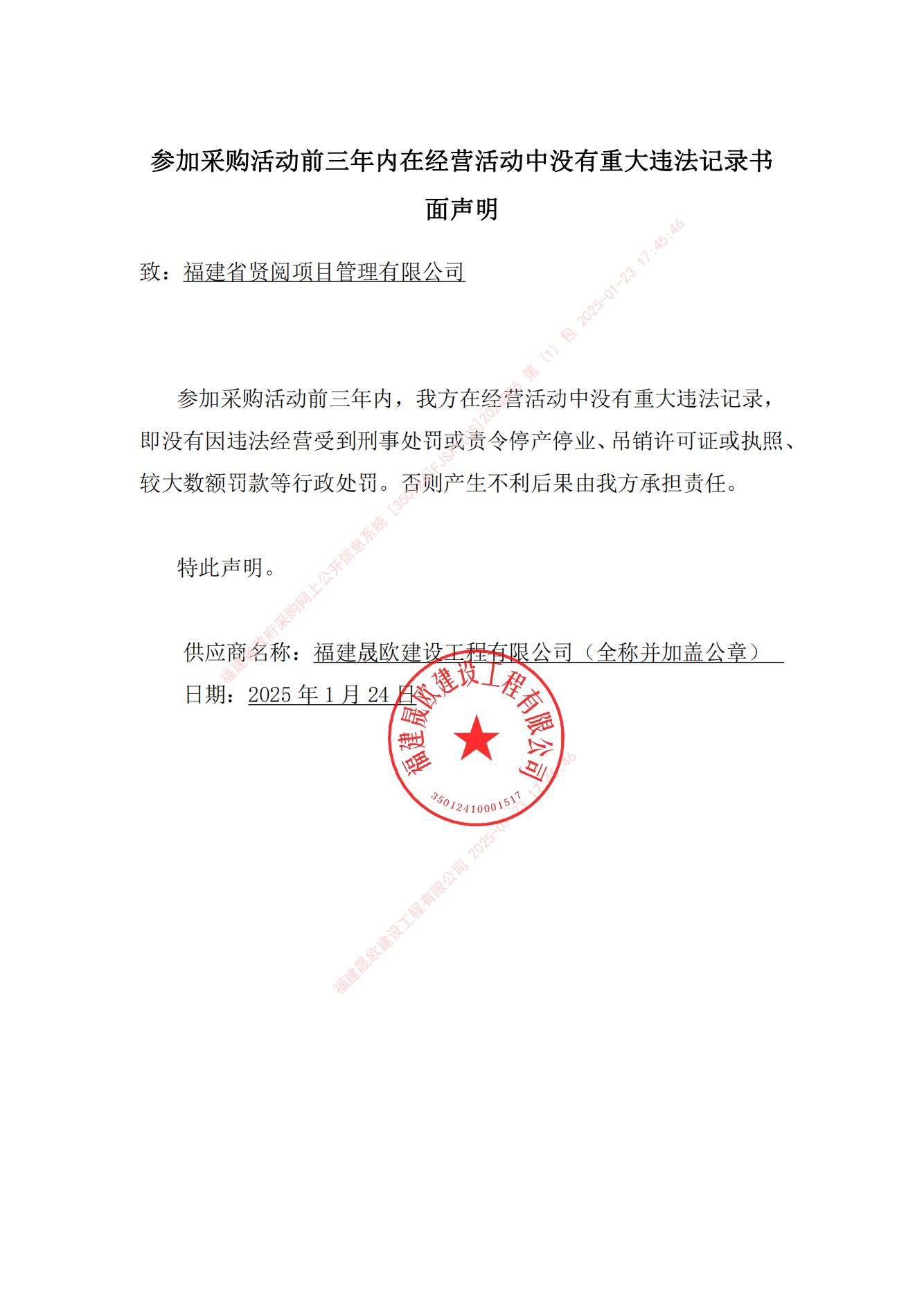 各供应商资格性及符合性审查情况均合格;福建融飞建设工程有限公司磋商与报价超时未响应,超时供应商视为主动退出的无效供应商。