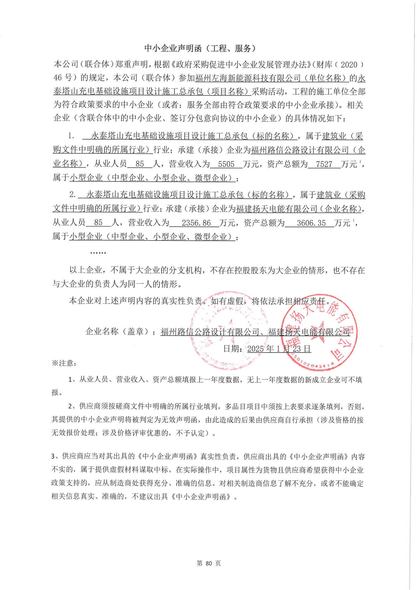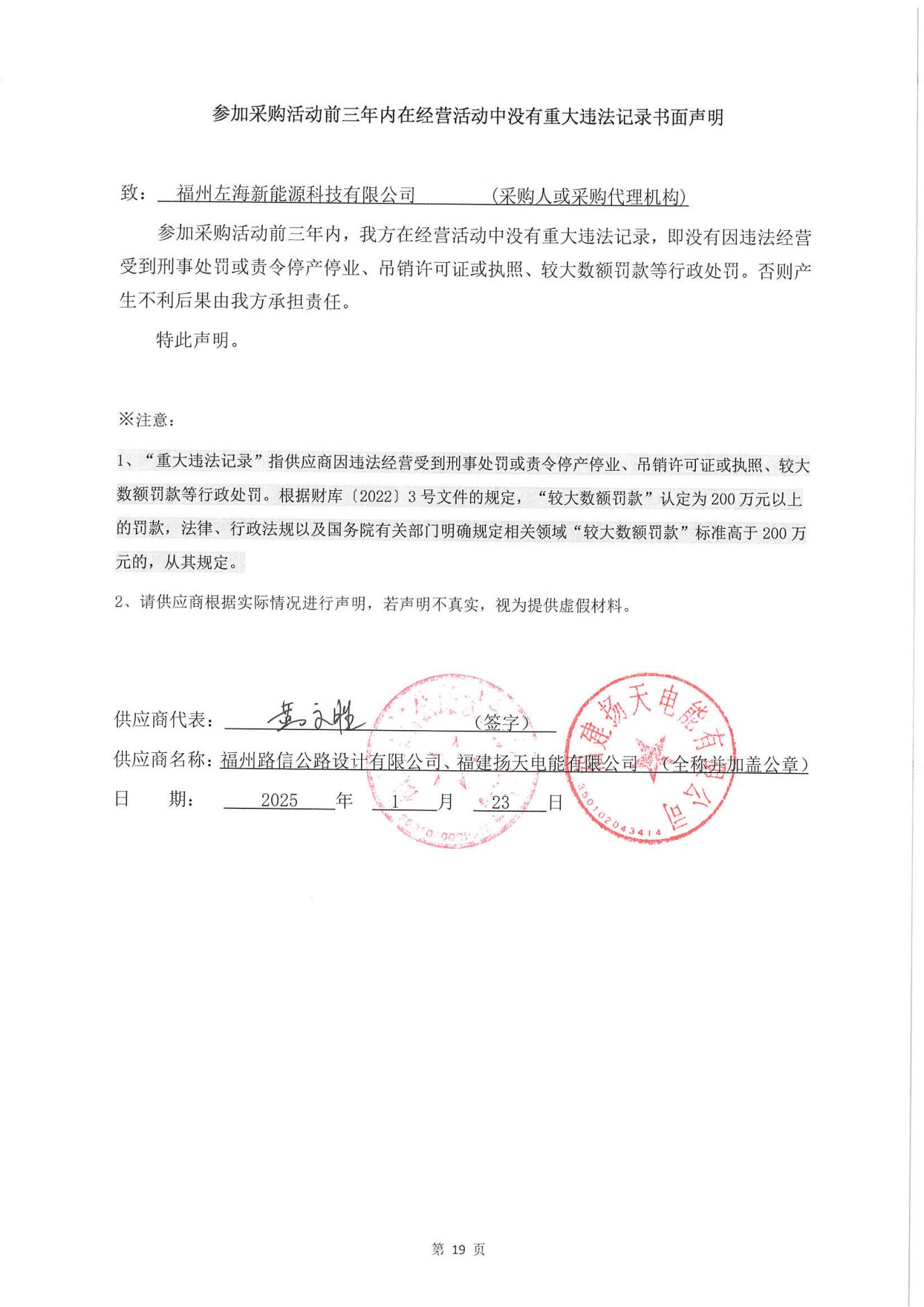 供应商名称:福州路信公路设计有限公司(牵头方)、福建扬天电能有限公司