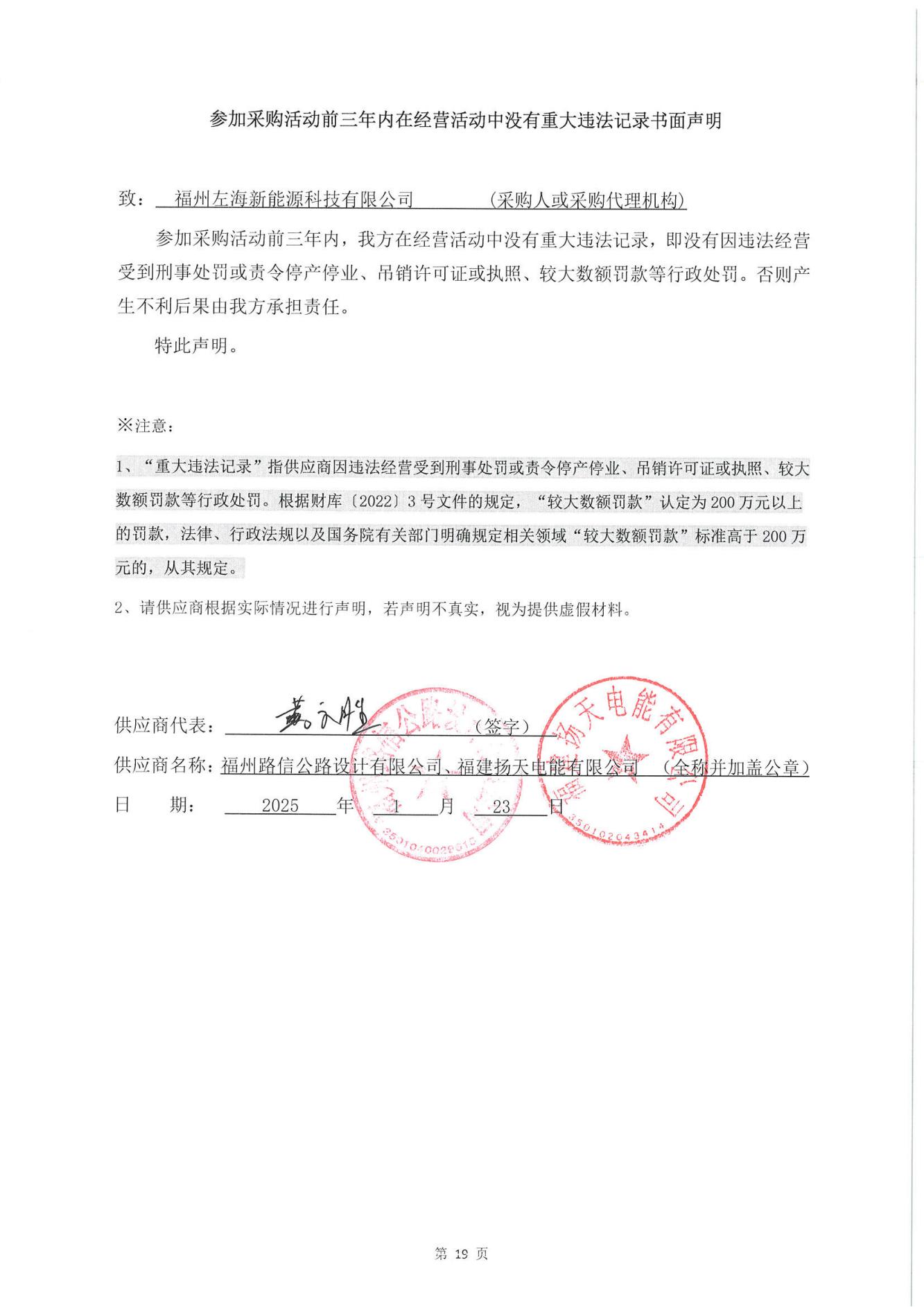 供应商名称:福州路信公路设计有限公司(牵头方)、福建扬天电能有限公司